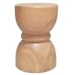 Introducing a round wood side table features an artistic hourglass design that makes a bold statement in any setting. The sculptural silhouette showcases elegant curves and organic contours, creating a visual masterpiece that serves as both a wooden stool and a side wooden table. Its compact yet striking presence makes it an ideal small wooden stool for contemporary and traditional spaces alike.