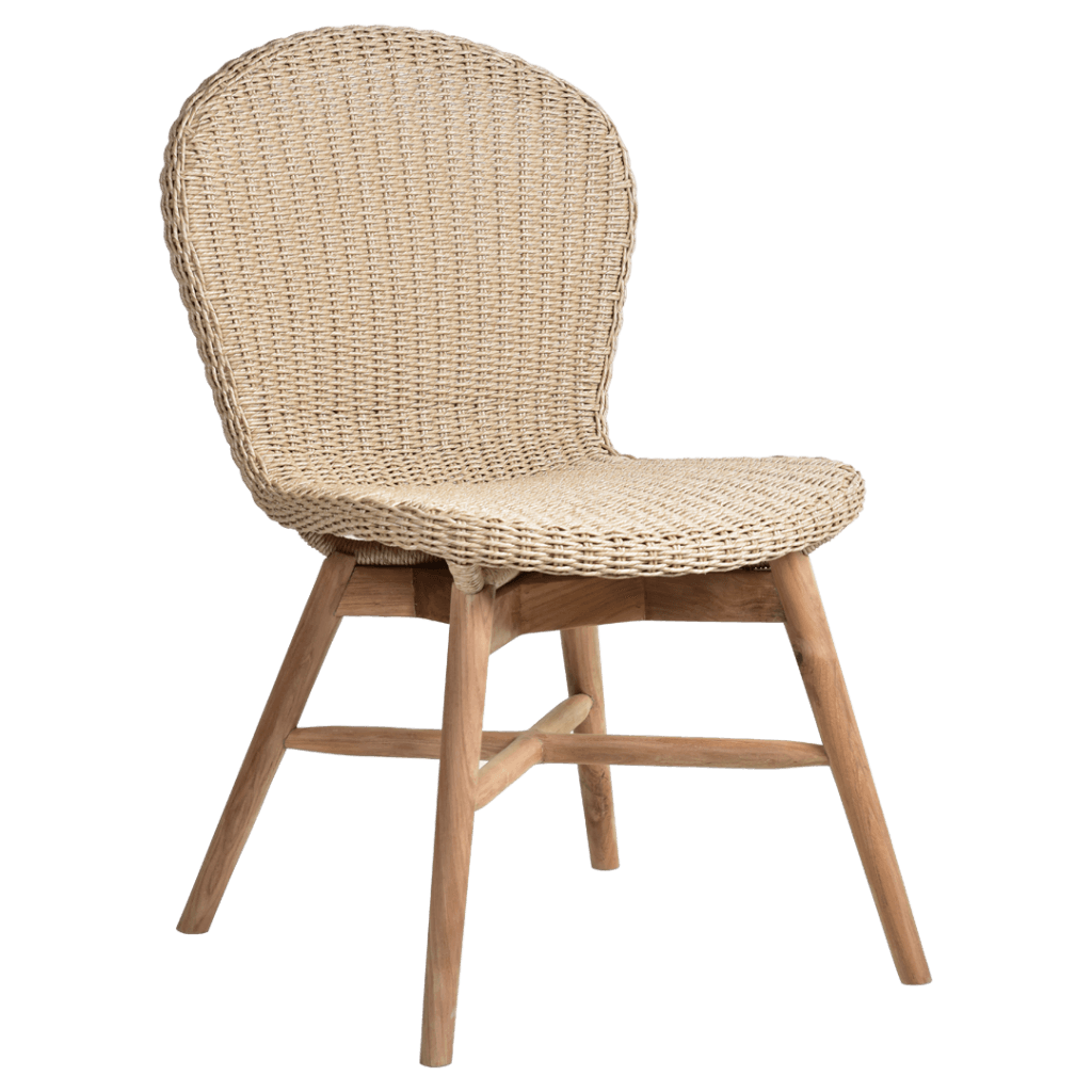 The Messina Ermita Pattern Chair combines elegant dining chair arms and intricate rattan weaving, making it a standout wooden armchair for any outdoor dining setting.