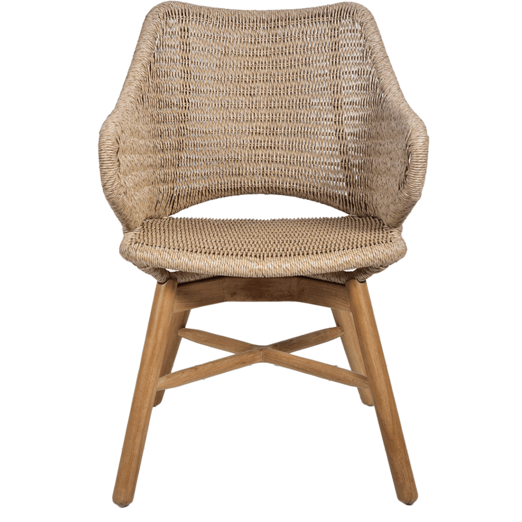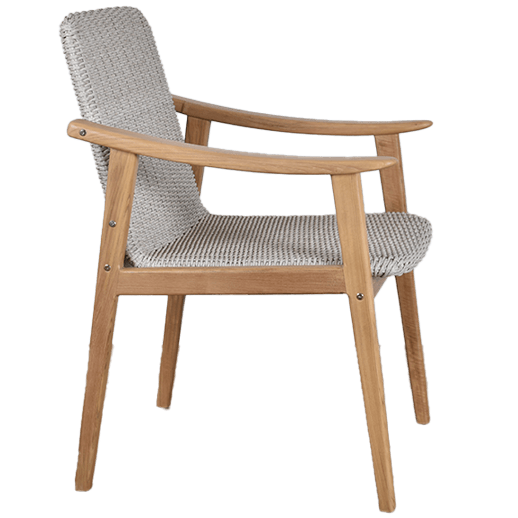 The Malta Dining Flat Arm Chair features elegant rattan weaving and a sturdy wooden frame, with flat dining chair arms for a sleek and modern dining experience. The thoughtfully angled backrest and precisely positioned armrests create an inviting seat that encourages lingering conversations over meals.