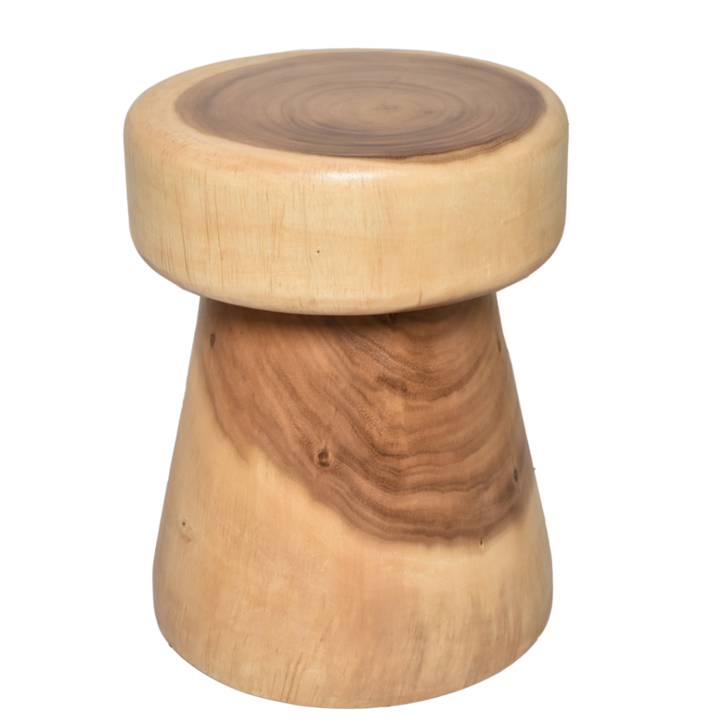 Introducing a round wood side table features an artistic hourglass design that makes a bold statement in any setting. The sculptural silhouette showcases elegant curves and organic contours, creating a visual masterpiece that serves as both a wooden stool and a side wooden table. Its compact yet striking presence makes it an ideal small wooden stool for contemporary and traditional spaces alike.