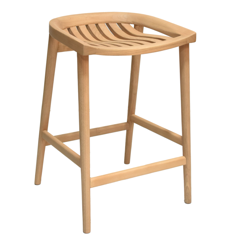 This counter stool features a modern, sleek design with a gently curved back and a sturdy frame, perfect for any kitchen or bar setting. Crafted from high-quality teak wood as main material, the Kondo stool offers both comfort and durability, making it an ideal choice for daily use.