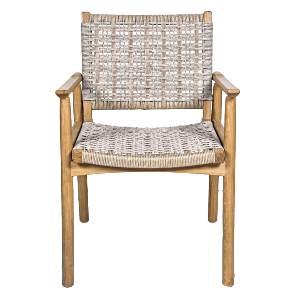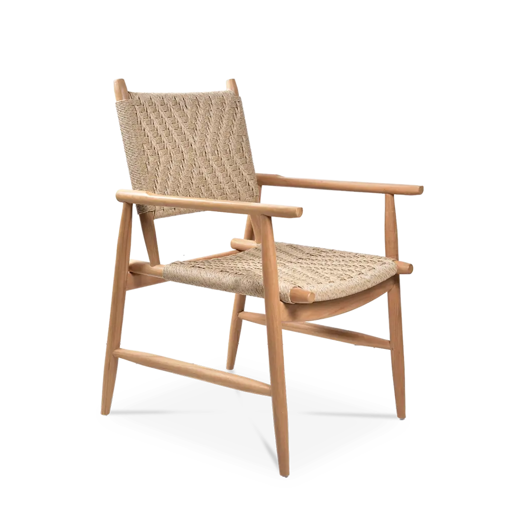 The Martini Armchair transforms outdoor dining into an elegant affair. Masterfully crafted from Teak wood and Rattan, this sophisticated chair welcomes you with comfortable armrests and modern appeal. The durable construction ensures countless moments of relaxation while its refined silhouette elevates any outdoor setting.