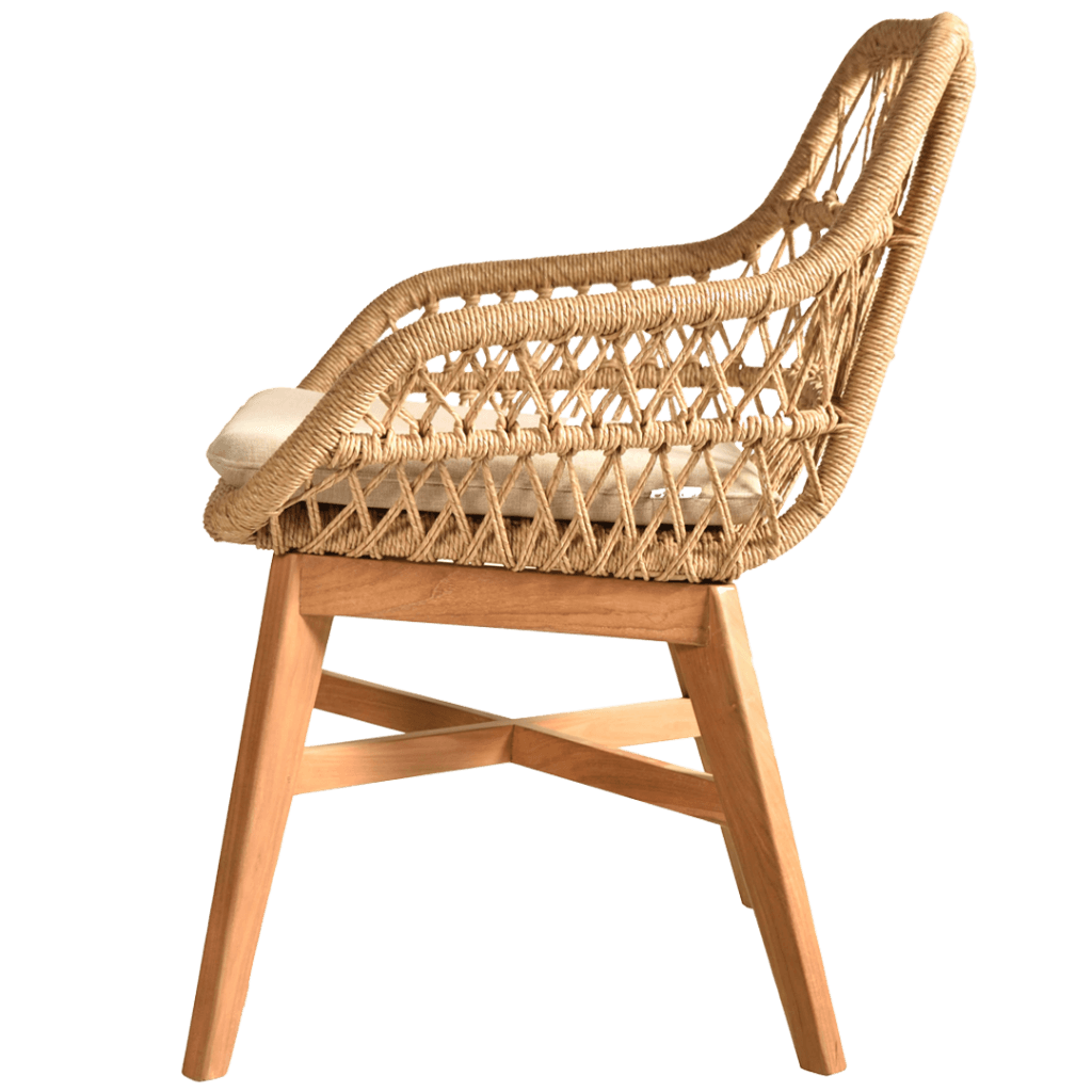 As a distinguished folding wooden chair, the Solo Folding Chair wood design offers the convenience of compact storage without compromising on comfort or style. The dining chair aesthetic is enhanced by the natural teak finish and intricate rattan weaving pattern, creating a casual appeal that works beautifully in any dining space.