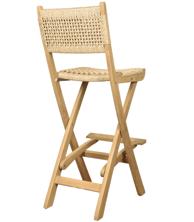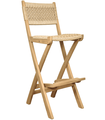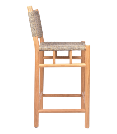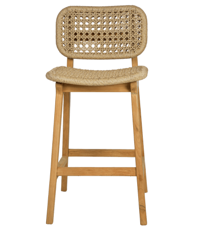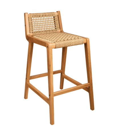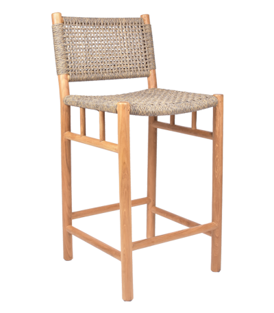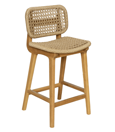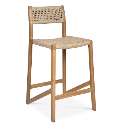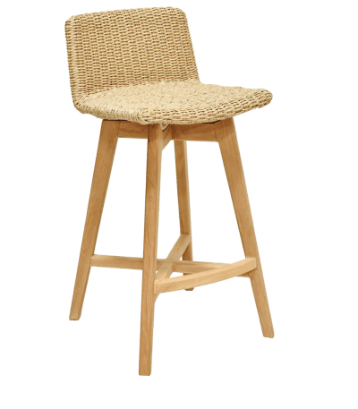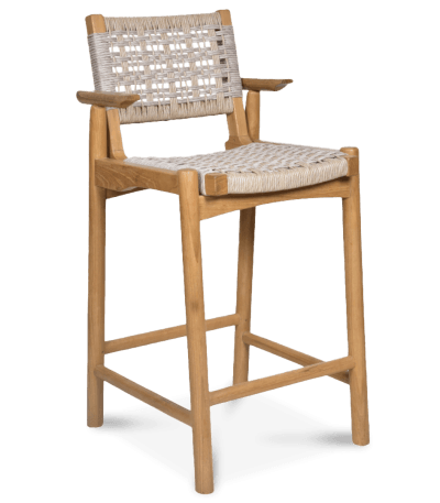This modern kitchen bar chair features a unique rattan and teak combination, perfect for outdoor bar settings. The Caracas Counter Chair brings resort-style luxury to your kitchen or patio bar area.