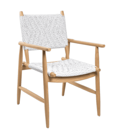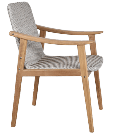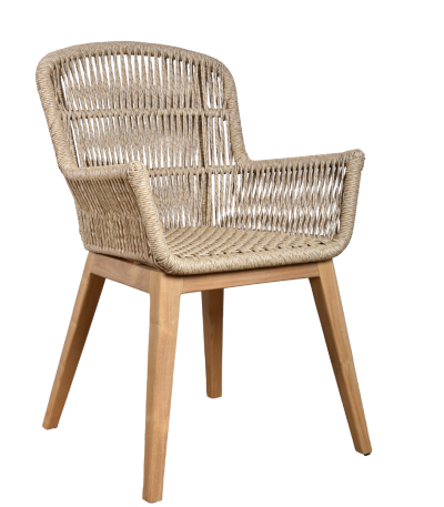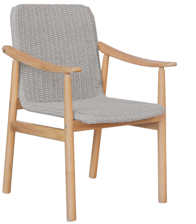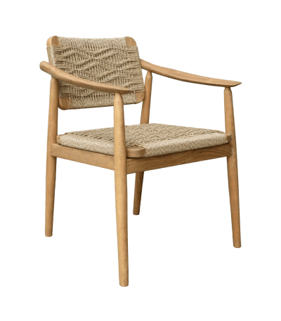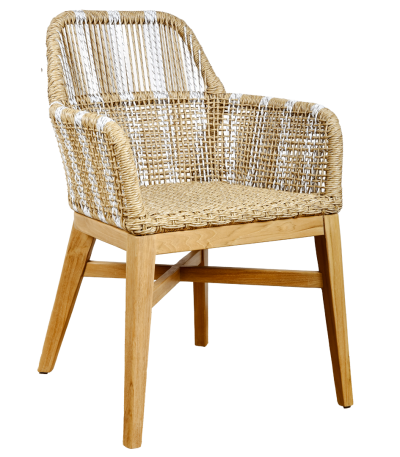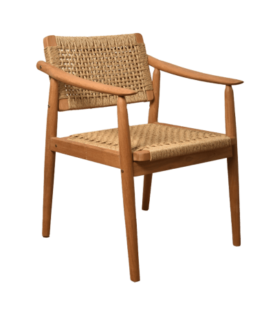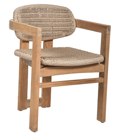 The Messina Ermita Pattern Chair combines elegant dining chair arms and intricate rattan weaving, making it a standout wooden armchair for any outdoor dining setting.