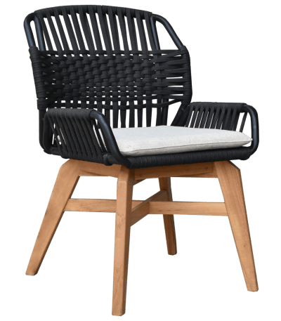 The Martini Armchair transforms outdoor dining into an elegant affair. Masterfully crafted from Teak wood and Rattan, this sophisticated chair welcomes you with comfortable armrests and modern appeal. The durable construction ensures countless moments of relaxation while its refined silhouette elevates any outdoor setting.