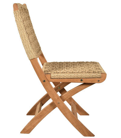 As a distinguished folding wooden chair, the Solo Folding Chair wood design offers the convenience of compact storage without compromising on comfort or style. The dining chair aesthetic is enhanced by the natural teak finish and intricate rattan weaving pattern, creating a casual appeal that works beautifully in any dining space.