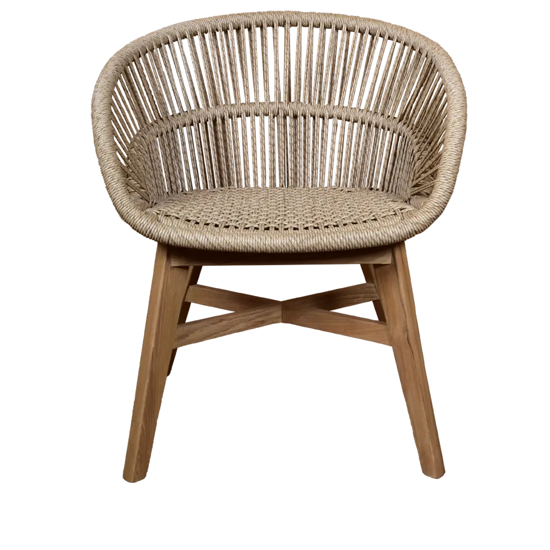 The Armani Dining Chair features a beautifully woven rattan seat and solid wooden legs, offering a contemporary yet timeless appeal. Ideal for any use, this chair fits seamlessly into dining room settings and outdoor gatherings. Its ergonomic shape ensures comfortable seating, making it a standout piece in any dining environment.