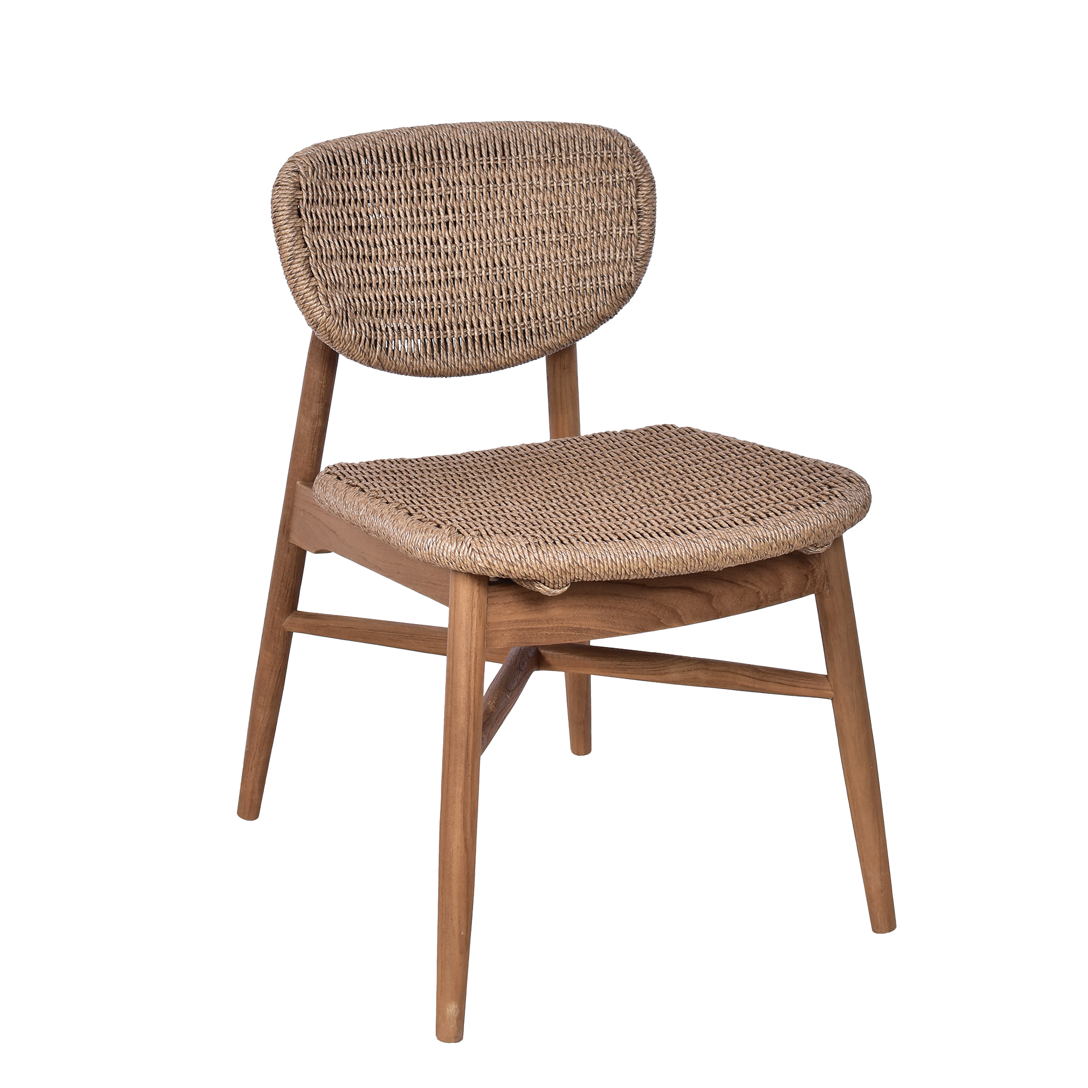 The Bora Bora Armless Chair combines a streamlined silhouette with the rich, organic textures of the tropics. Built from premium solid teak, this chair features a meticulously hand-woven rope seat and backrest, offering a lightweight aesthetic without compromising on durability or comfort.